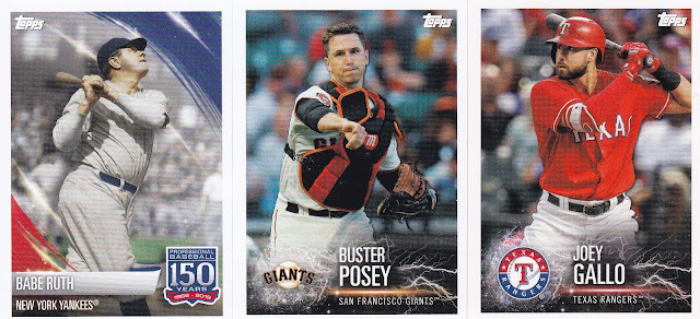 Three more stickers shown here. I like the base designs quite a bit. I would like to see this on a regular card. The card stock is pretty thin but I like what Topps did this year.